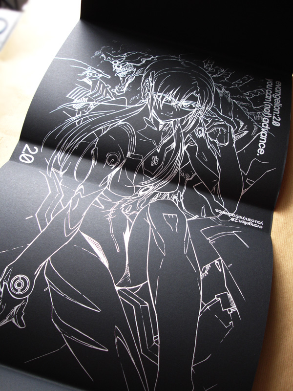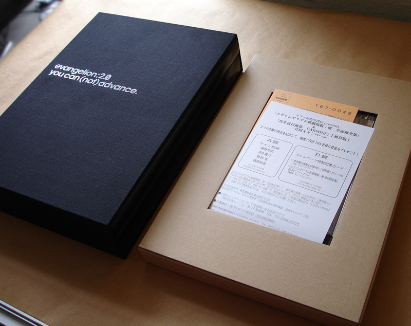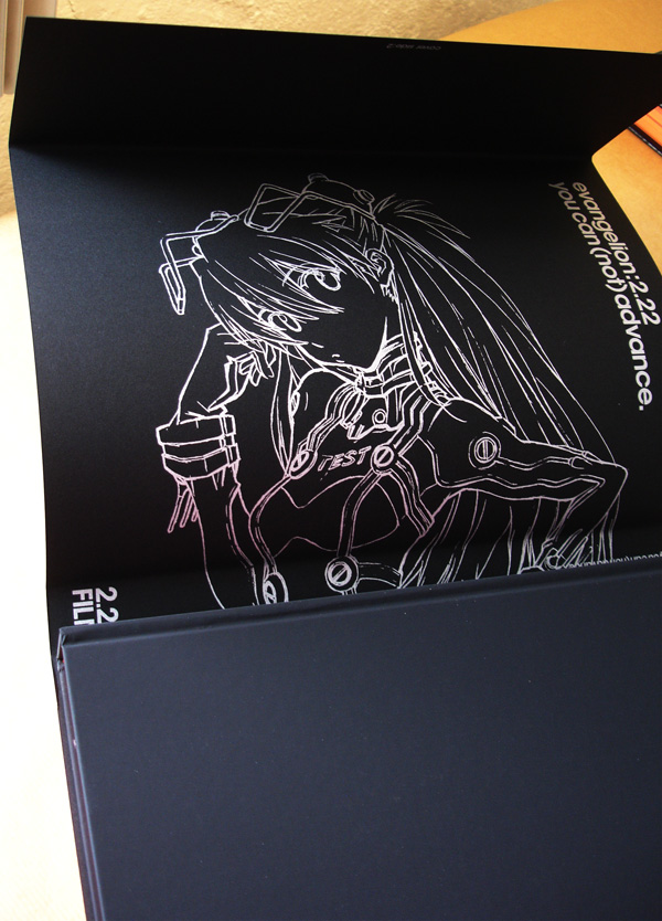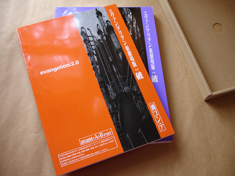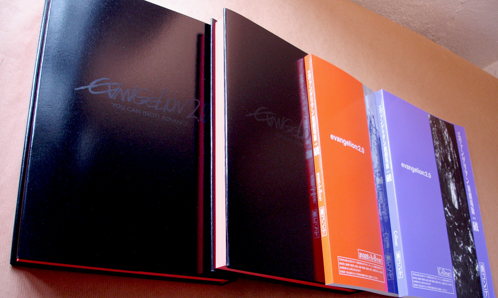 Esta es una colección de cuatro libros que contiene todo el registro de la realización de la segunda película de la reinterpretación de Evangelion . Dos libros son de pasta dura y vienen contenidos en una caja dura forrada en tela negra, una presentación muy buena, uno de los tomos es un Film Book, conteniendo toda la película en imágenes, el otro titulado Zen Kiroku Zenshu, contiene el diseño de personajes, escenarios, arte conceptual, diseño publicitario y promocional así como también una extensa sección de entrevistas con las personas involucradas en el filme, todo en japonés así que si quisiéramos sacarle provecho a esta parte necesitamos tener una muy buena comprensión del idioma nipón. Los dos libros restantes son de pasta blanda y son el storyboard del filme.