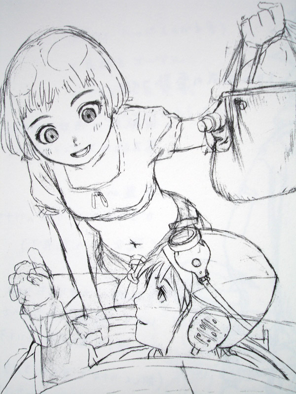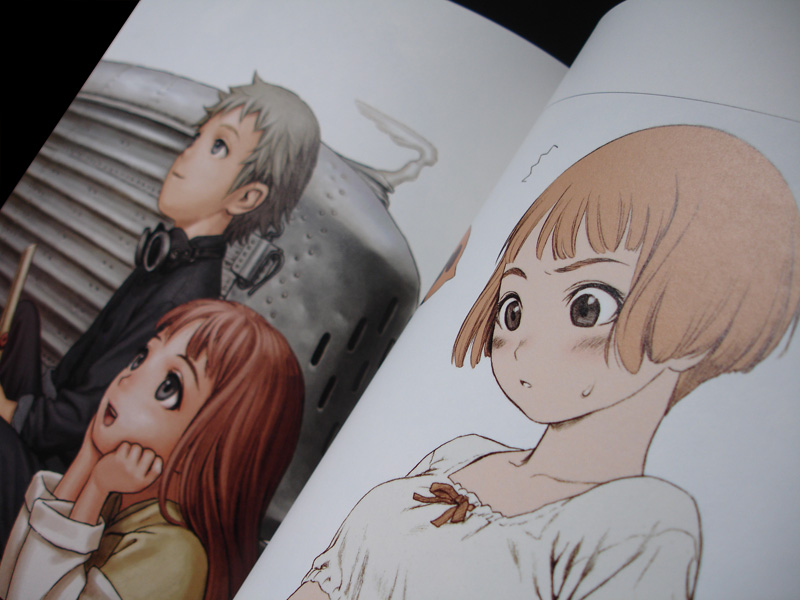 Range Murata es uno de los artistas que acostumbro seguir de cerca ya sea por sus ilustraciones en revistas o portadas de libros, en su papel de creador y editor de Robot una compilación de manga o como diseñador de personajes, que fue la manera en que tuve contacto por primera vez con su trabajo en la serie de OVAs de Blue Submarine No.6, recuerdo haber comprado el primer volumen en VHS pero fue hasta que Locomotion la trasmitió que termine de ver completamente esta serie que combinaba la animación 2D con elementos 3D y cuyos personajes tenían un peculiar estilo que me llamaba la atención, en ese entonces todavía no ubicaba bien el nombre de Murata, no fue hasta que empece a leer artículos sobre un anime llamado Last Exile que empeze a reconocer el estilo de sus personajes, con cierto toque retro-futurista, mujeres de facciones aniñadas con una gran elegancia en su vestimenta y un detallado diseño de accesorios, maquinarias y utensilios diversos que en verdad parecen funcionales, no en balde Range Murata viene del diseño industrial.