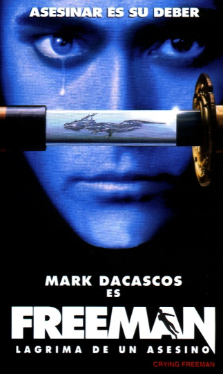 La mejor adaptación cinematográfica de una historieta que he visto, la dirección, fotografía, casting, toda la producción en general es de lo mejor, en México tuvimos la fortuna de que se exhibiera en salas de cine, aunque por muy poco tiempo, y ahora ha salido al mercado del video. La historia trata de Yo Hinomura el asesino de una organización china llamada "Los 108 dragones", el nombre clave de Yo dentro de la organización es crying freeman, ya que después de cada asesinato que comete llora. La película inicia cuando esta llevando a cabo el asesinato del hijo de un jefe de la mafia japonesa, esto es presenciado por Emu O'hara y aunque Yo se presenta cordialmente con ella esto significa que debe matarla ya que nadie debe de conocer el rostro de el asesino de los 108 dragones, esto no se lleva a cabo por que cae perdidamente enamorado de ella así como ella de él, es entonces cuando inicia su lucha por liberarse del yugo de la organización y contra la mafia japonesa que busca venganza contra él y así poder estar con la mujer que ama. La película comprende la primera historia de crying freeman en manga, con mínimas variaciones pero esencialmente respetando la idea original de la obra de Kazuo Koike y Ryoichi Ikegami. La producción es compartida por varios países Francia-Canadá-Japón, el director de la película Christopher Gans es francés y el reparto es verdaderamente internacional en el papel de freeman tenemos a Mark Dacascos, Julie Condra como Emu O'hara, Tcheky Karyo como el inspector Netah y varios actores japoneses reconocidos como Yokko Shimada, B mann y M Kato. El que la producción tenga una fuerte participación francesa no es de extrañar si tomamos en cuenta que Francia es uno de los paises en los que mas difundidos están el manga y anime, tal vez sea el único país aparte de Japón en el que se edito la película en LaserDisc además de que es una edición especial con notas de producción, entrevistas y making off de la película. La pagina oficial de la película es francesa y aunque actualmente solamente esta en francés antes también la encontrabas en ingles. -------------------------------------------------------------------------------------- 25 Dic 2003 Originalmente cuando escribi este texto hace 5 años la única forma de conseguir esta pelicula era en VHS, los tiempos han cambiado y el formato dominante tambien así que ahora la encontramos en DVD, aunque no con muchos cambios ya que Videomax no le agrega ningun extra a su disco exceptuando que ahora podemos desactivar los subtítulos, el formato de imagen es 4:3, es decir adaptado (recortado) para verlo en una TV normal, esperemos que pronto Videomax empieze a publicar sus videos en formatos originales, aunque esto implique bandas negras en los extremos de la imágen.